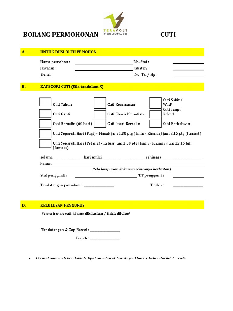 Borang Permohonan Cuti A Untuk Diisi Oleh Pemohon