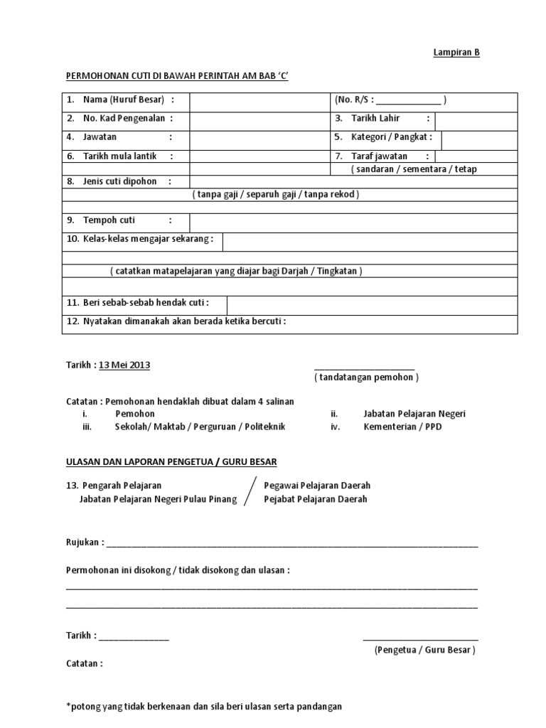 Borang Cuti Separuh Gaji Perintah Am Bab C