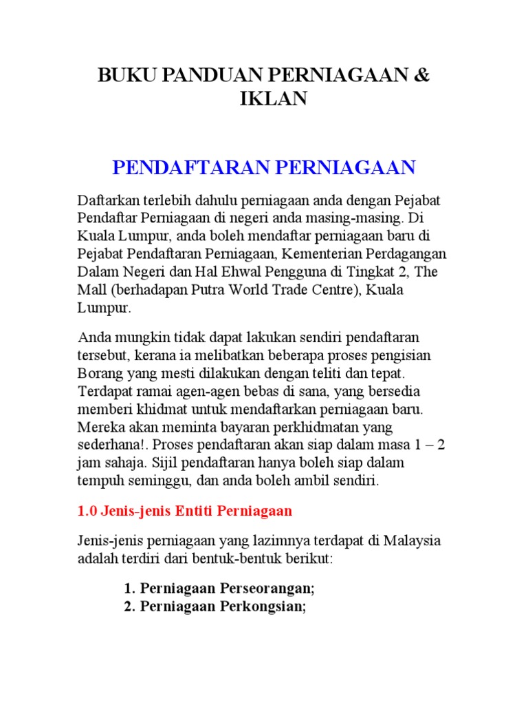Buku Panduan Perniagaan Iklan Pendaftaran Perniagaan