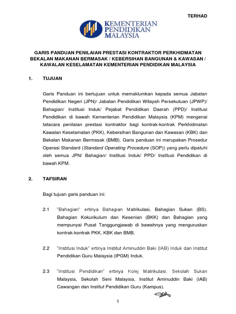 Https Www Moe Gov My Pekeliling 1009 Garis Panduan Penilaian Prestasi Kontraktor Perkhidmatan File