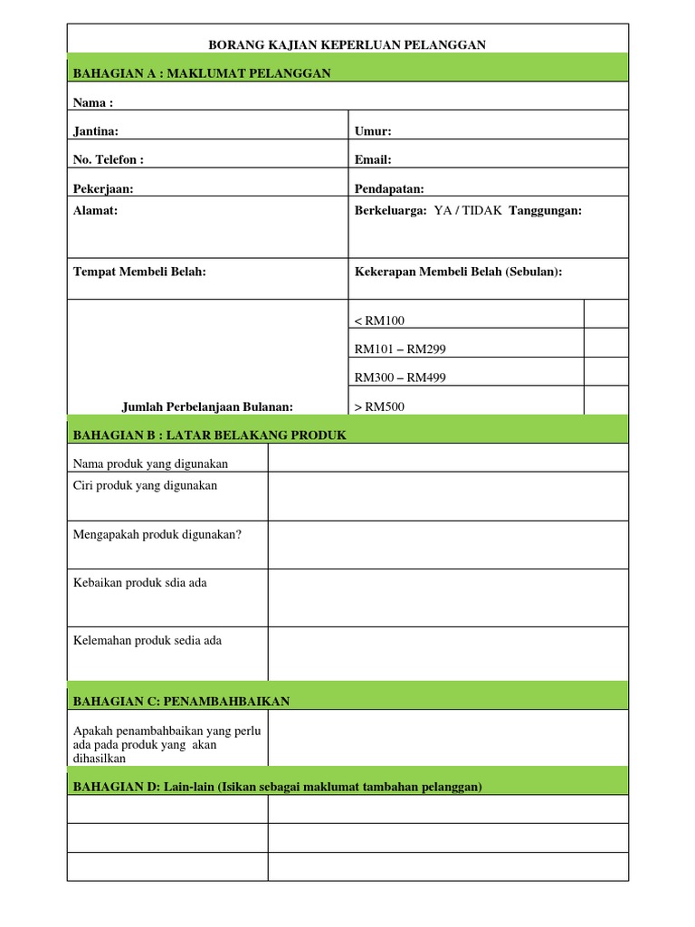 Contoh Borang Kajian Keperluan Pelanggan Rbt Tingkatan 3