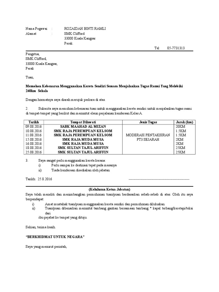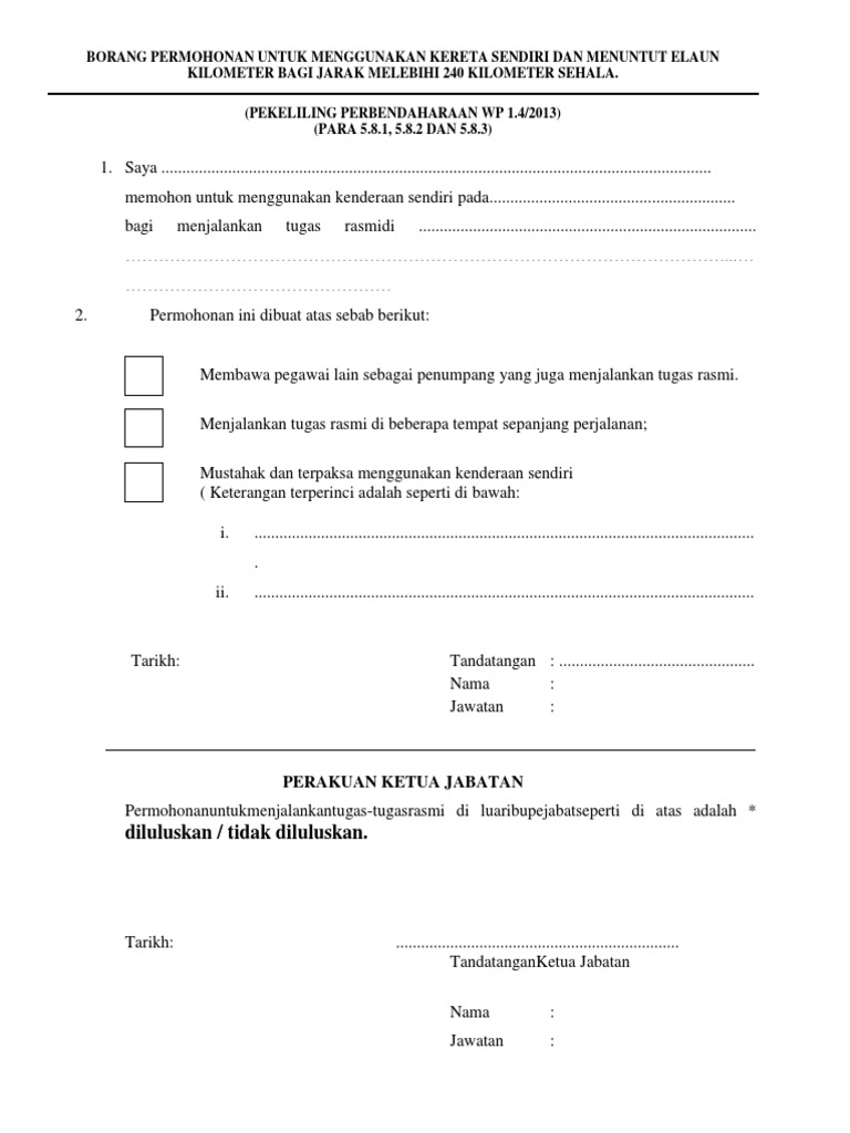 Borang Kelulusan Menggunakan Kenderaan Sendiri Pdf
