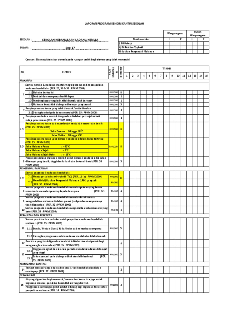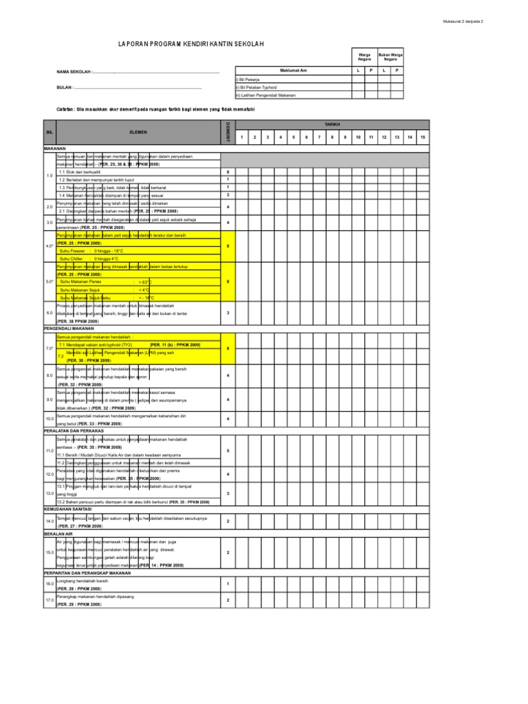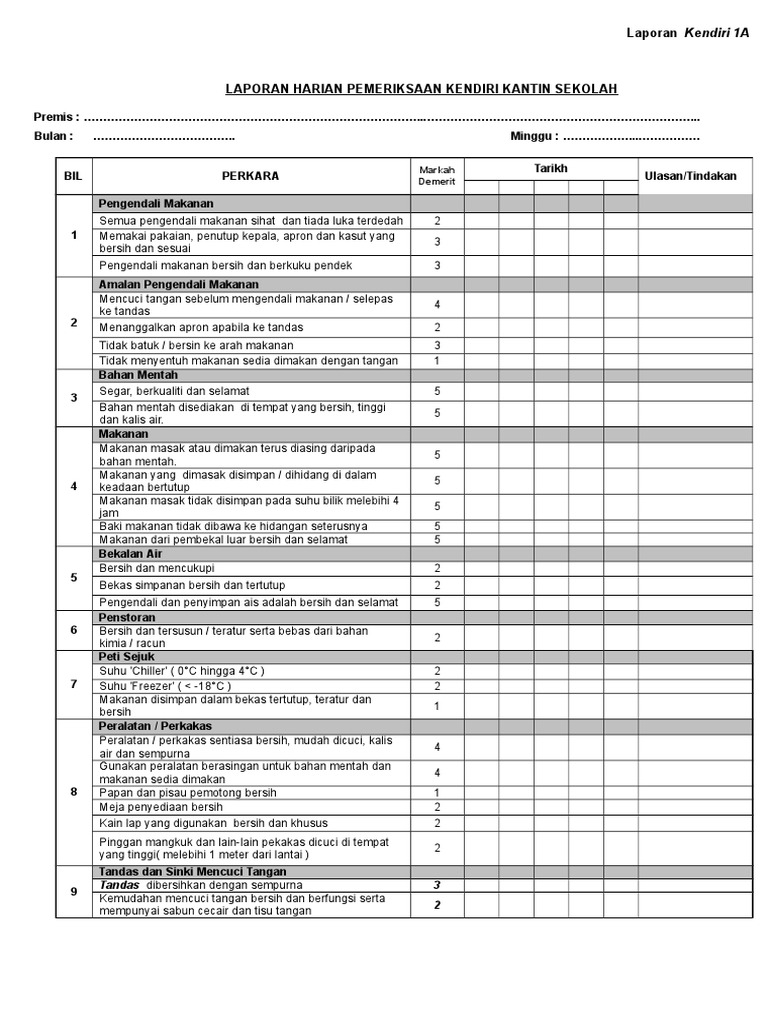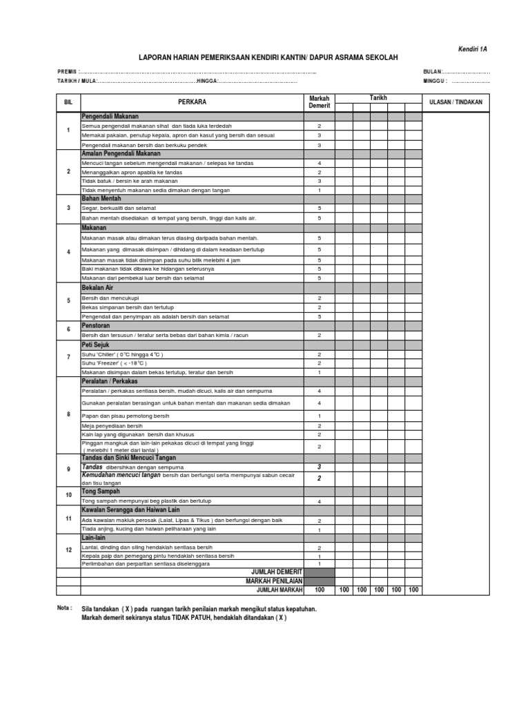 Borang Laporan Harian Kendiri Kantin Sekolah Kendiri 1a Pdf