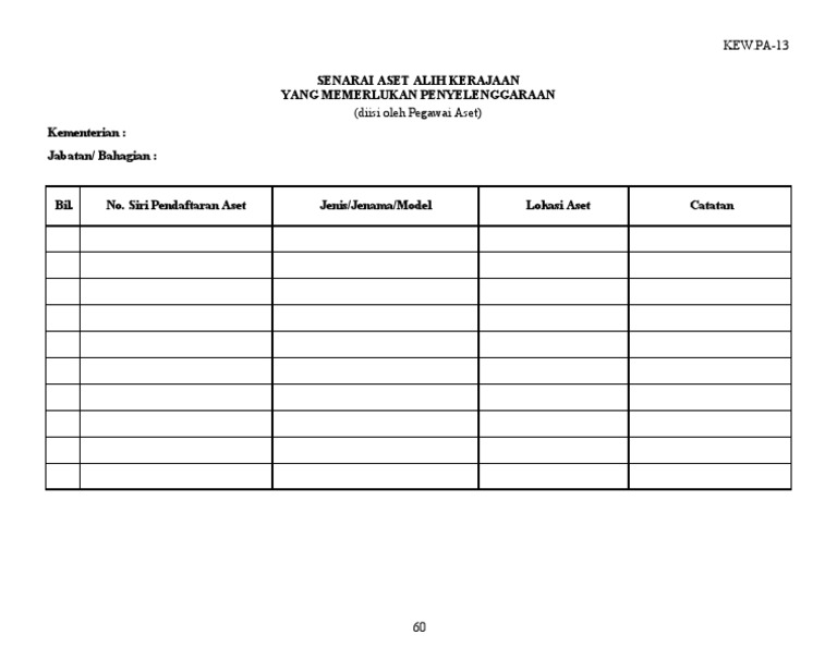 Kew 1 Pa 13 Senarai Aset Memerlukan Penyelenggaraan