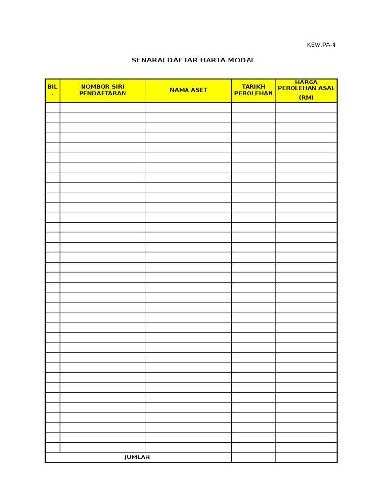4 Kew Pa 4 Senarai Daftar Harta Modal