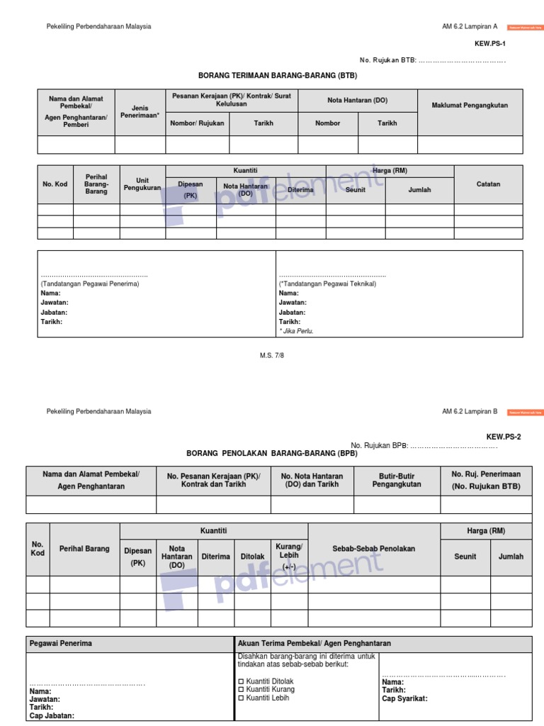 Kew Ps 1 Borang Terimaan Barang Barang Btb