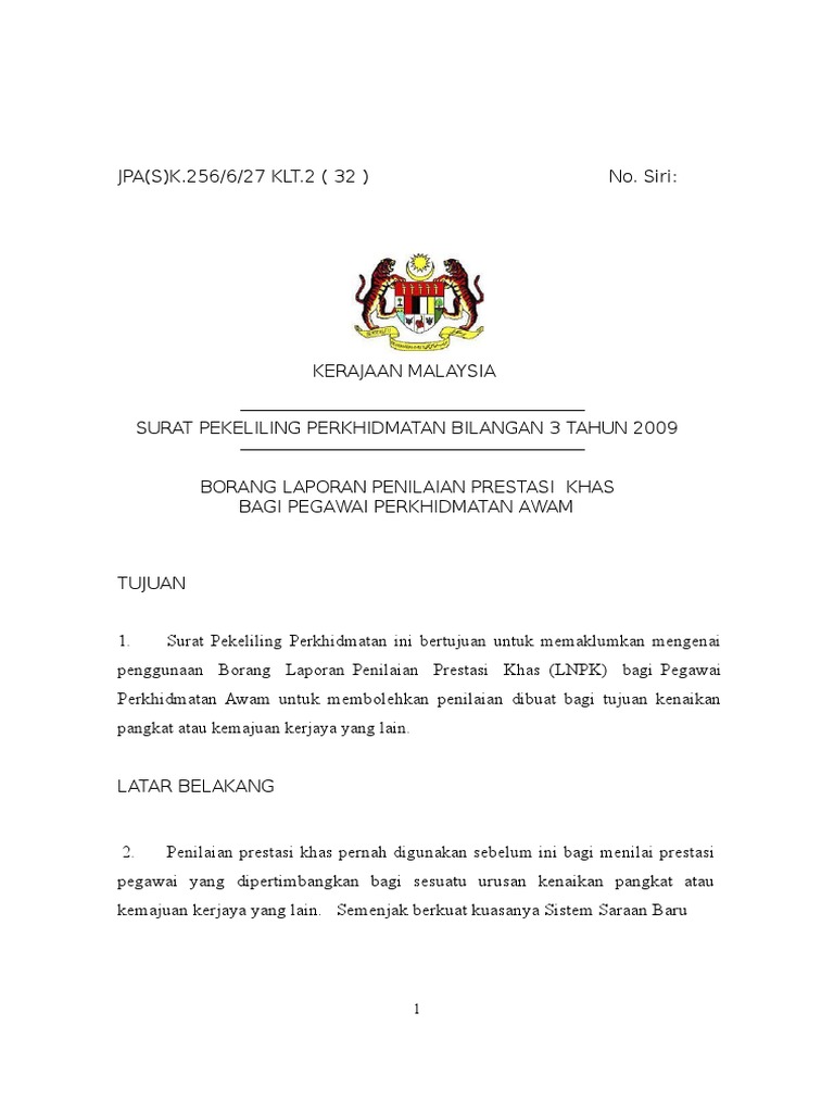 Spp Bil 03 2009 Pekeliling Borang Laporan Penilaian Prestasi Khas Bagi Pegawai Perkhidmatan Awam Pekeliling Terbaru Kerajaan
