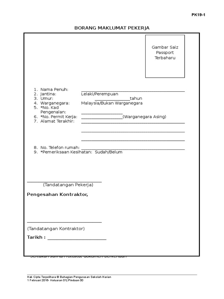 Borang Maklumat Peribadi Kakitangan Jabatan Sumber Manusia