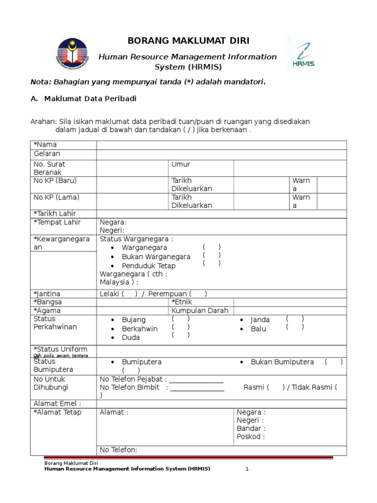 Pdf Borang Maklumat Diri Human Resource Management Information System Hrmis 1 Borang Maklumat Diri Human Resource Management Information System Hrmis Jamalie Taib Academia Edu