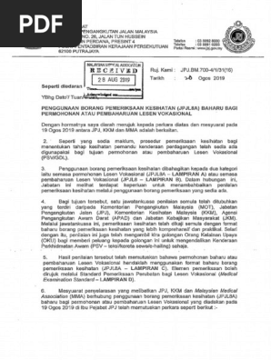 Penggunaan Borang Pemeriksaan Kesihatan Jpjl8a Baharu Bagi Permohonan Atau Pembahruan Lesen Vokasional 20hb Ogos 2019