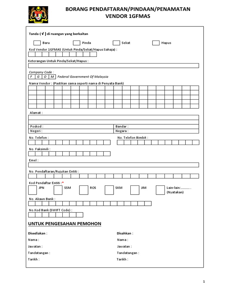 Borang Vendor 1gfmas
