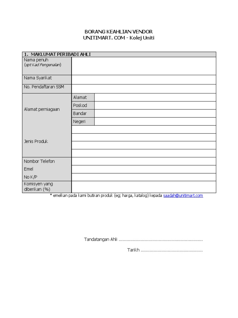 Borang Pendaftaran Dan Penamatan Pembekal Sistem Evendor Pdf