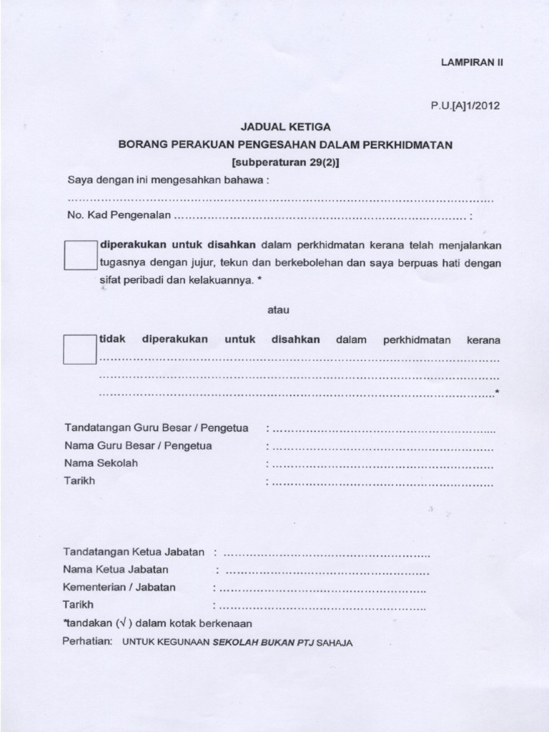 Jadual Ketiga I Peraturan 27 Borang Perakuan Pengesahan Dalam Perkhidmatan