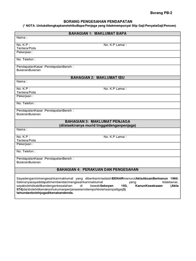 Borang Pb 2 Borang Pengesahan Pendapatan