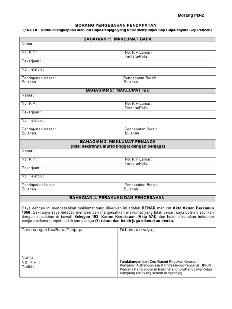 Borang Pengesahan Pendapatan Pb 2 Pdf