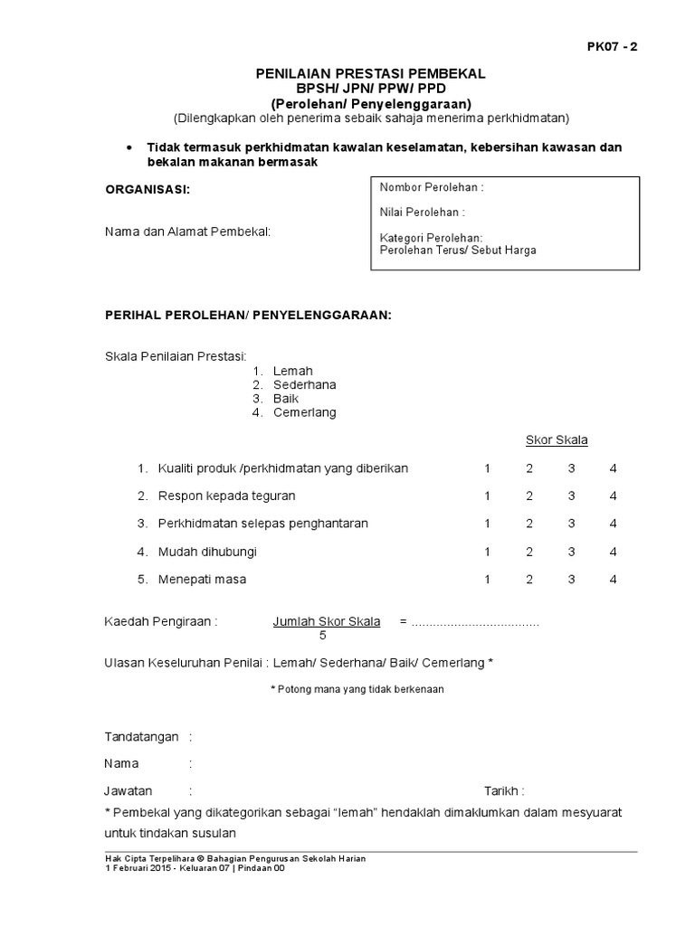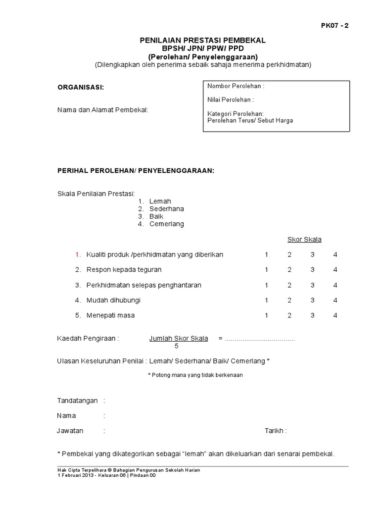Https Kjmserian Files Wordpress Com 2016 03 Borang Penilaian Prestasi Pembekal Pdf