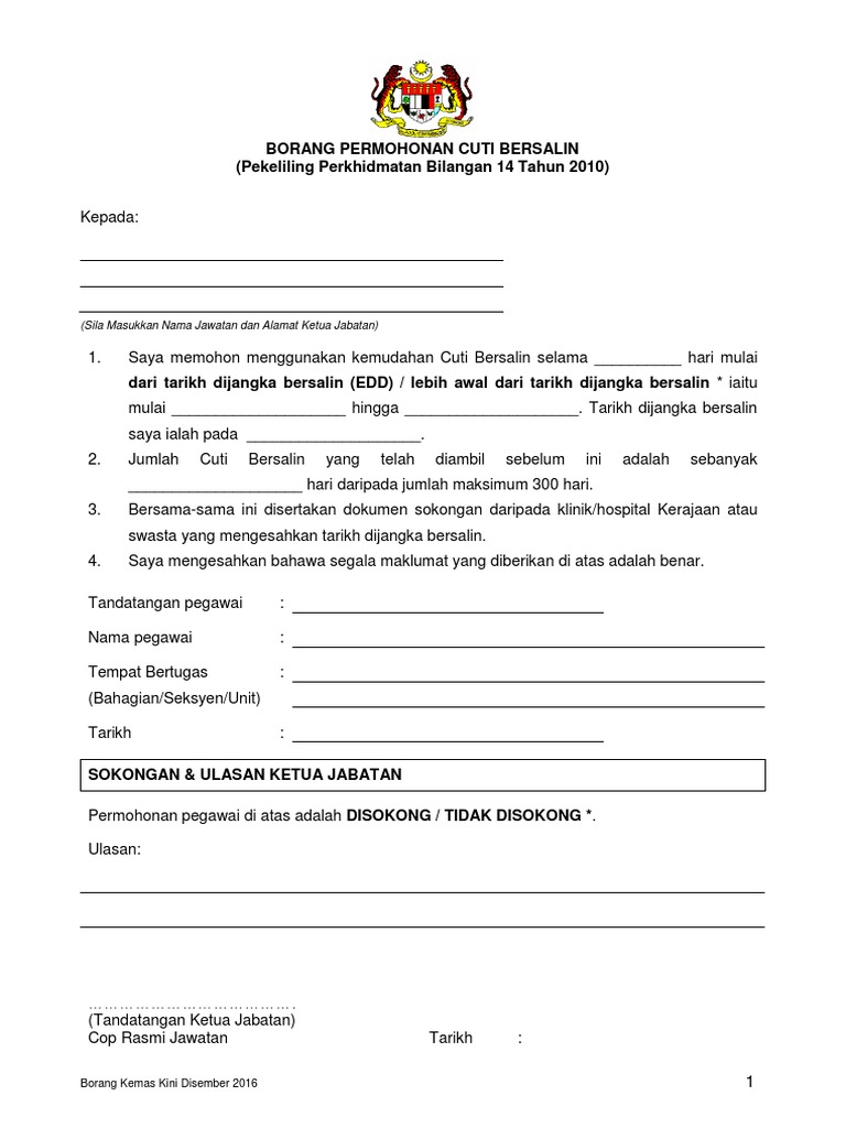 2 Agc Permohonan Cuti Bersalin Borang Kemas Kini Disember 2016