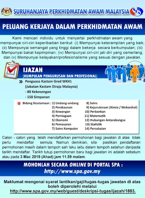 Permohonan Jawatan Penguasa Kastam Gred Wk41 Jabatan Kastam Diraja Malaysia Di Buka 80 Kekosongan Dan 150 Simpanan Jawatan Kosong