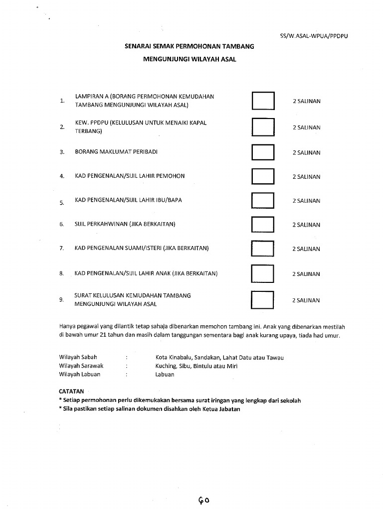 Borang Permohonan Kemudahan Tambang Mengunjungi Wilayah Asal Pdf Document