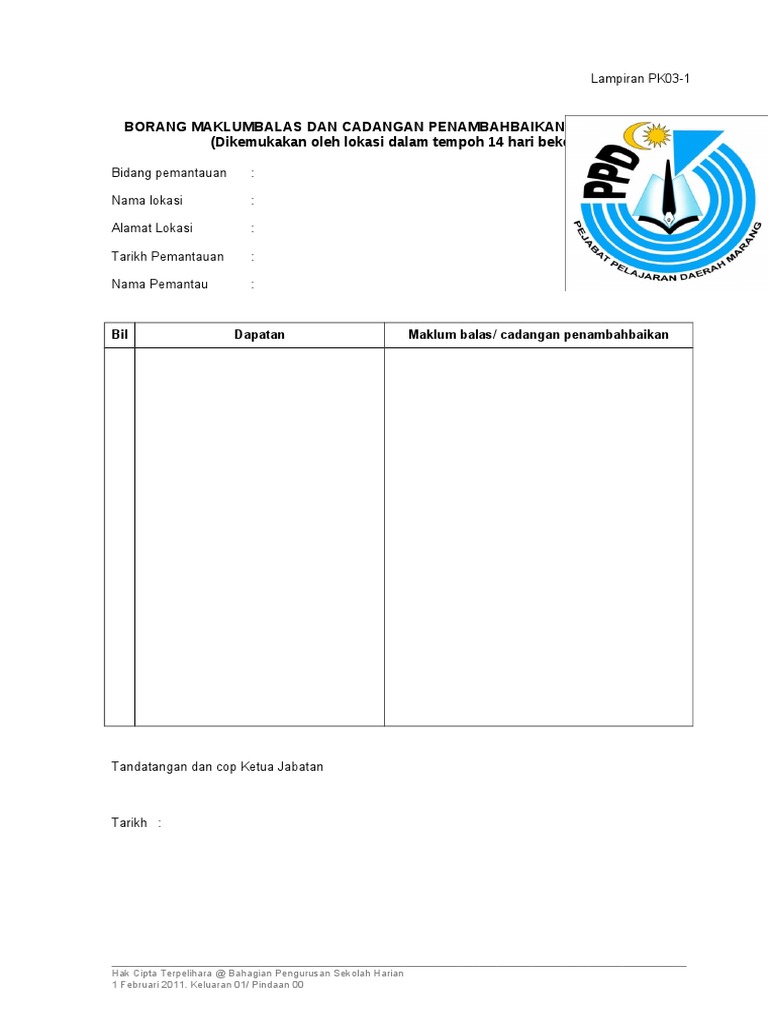 Doc Pk03 1 Borang Rumusan Dapatan Pemantauan Top Gun Academia Edu