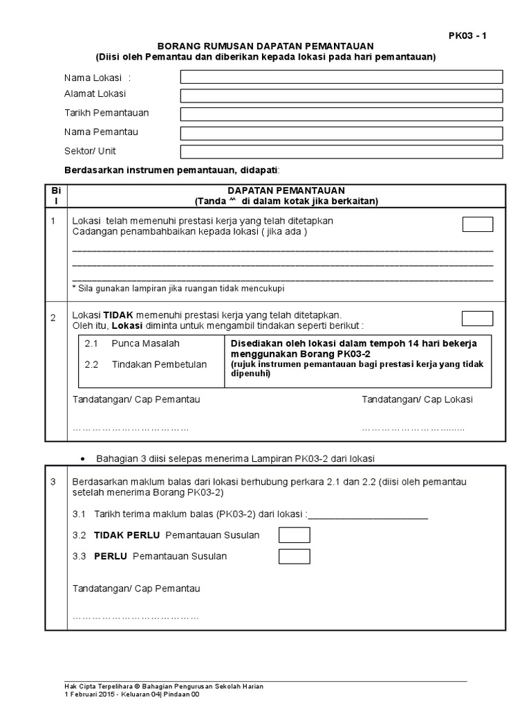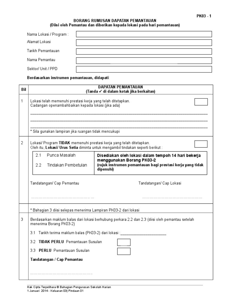 Pk03 1 Borang Rumusan Dapatan Pemantauan 1