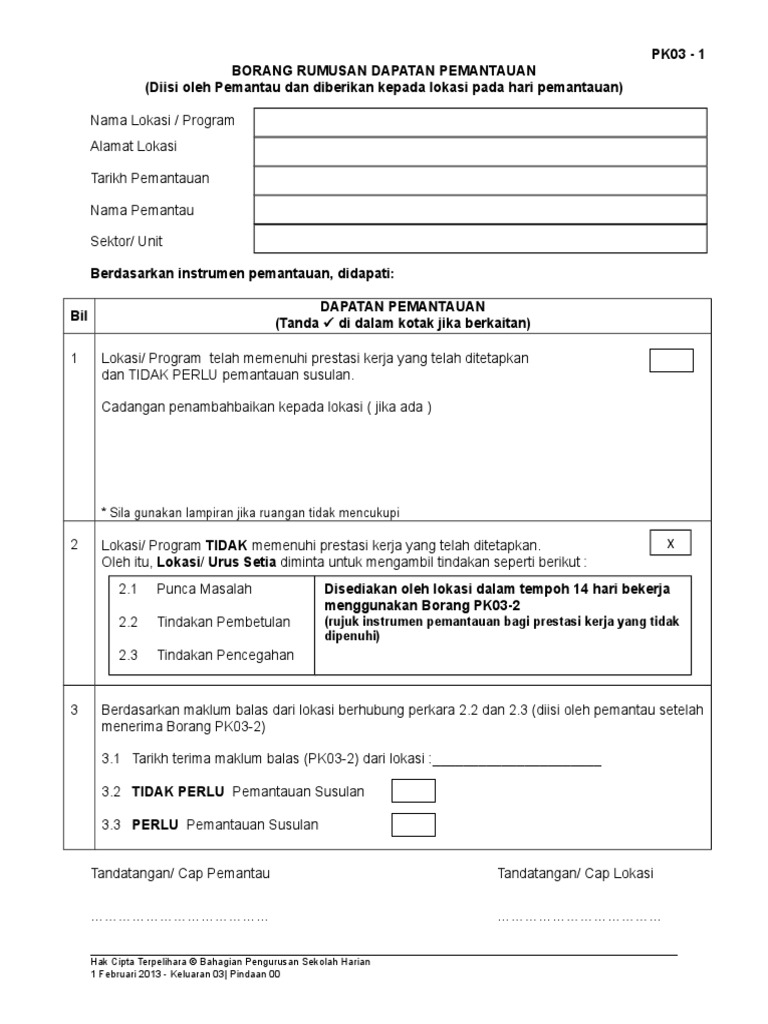 Pk03 1 Borang Rumusan Dapatan Pemantauan Diisi Pdf Document