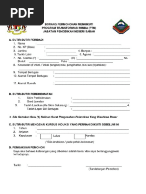 Borang Permohonan Mengikuti Program Transformasi Minda Ptm Jabatan Pendidikan Negeri Sabah