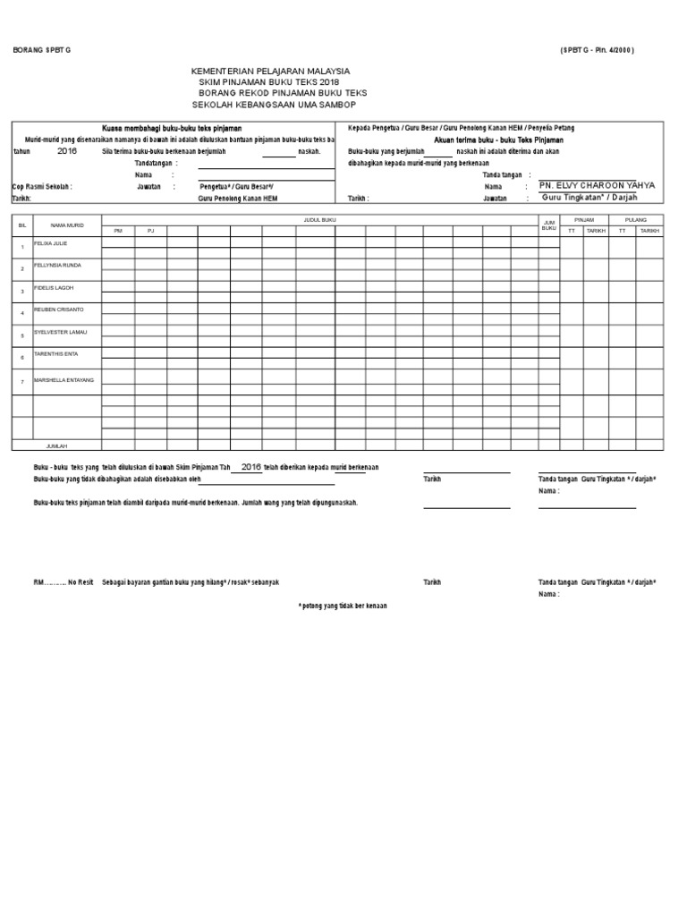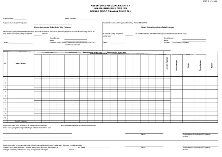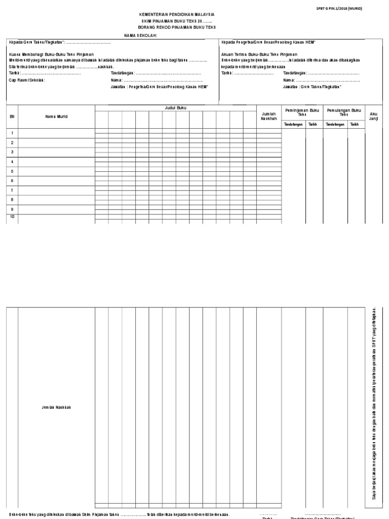 Borang Spbt G Tahun 1 2018