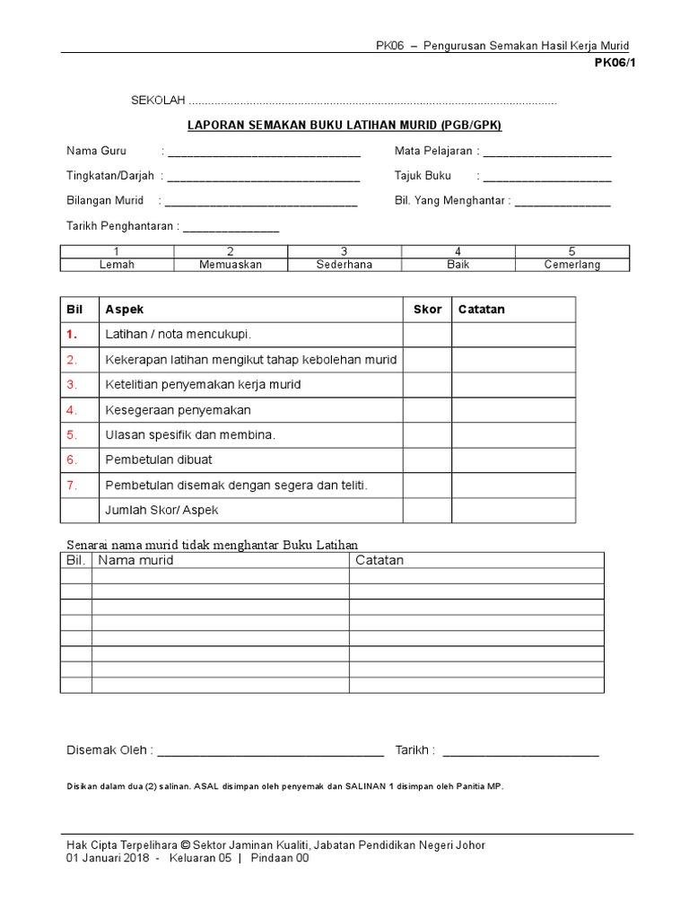 Borang Pk 06 2 Rekod Semakan Kerja Murid Pgb