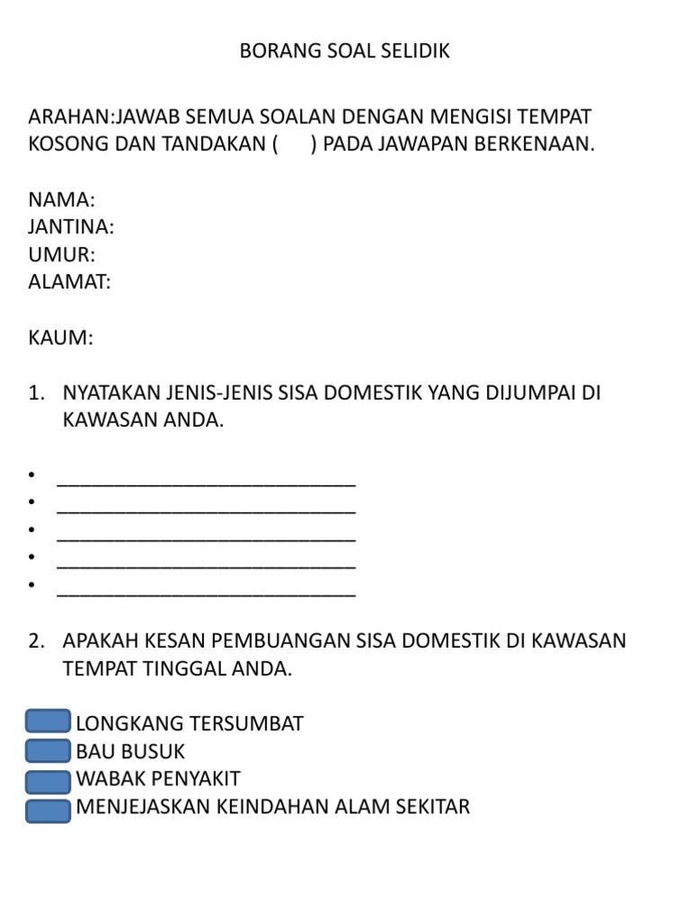 Borang Soal Selidik Geografi Pt3 Sisa Domestik