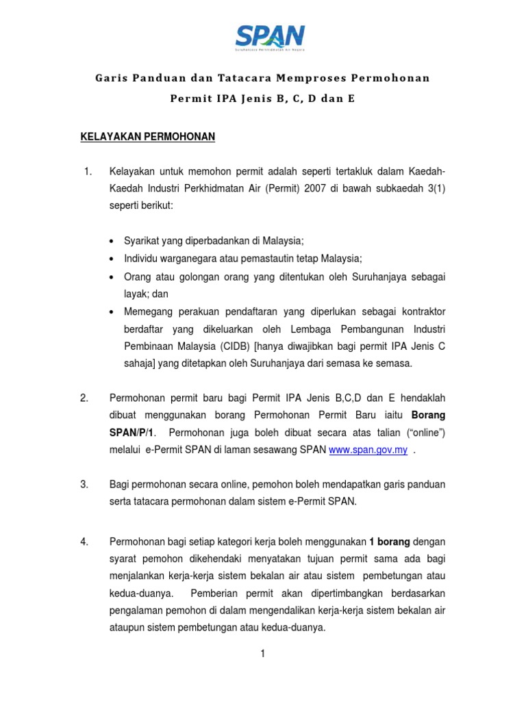 Guidelines And Procedures To Process Ipa Permit Type B C D E Application