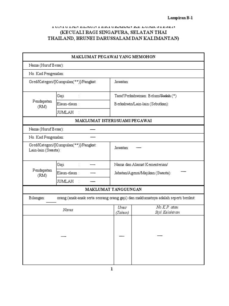 Borang Tuntutan Elaun Pertukaran Luar Stesen B1
