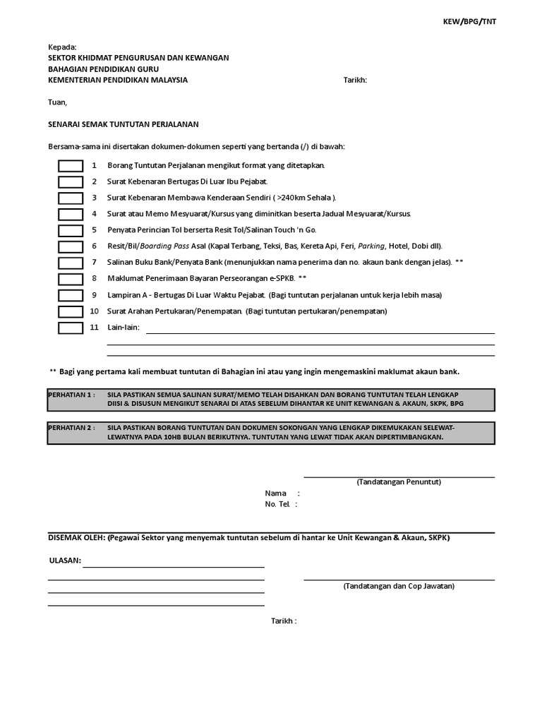 Borang Tuntutan Perjalanan Kementerian Pendidikan Malaysia