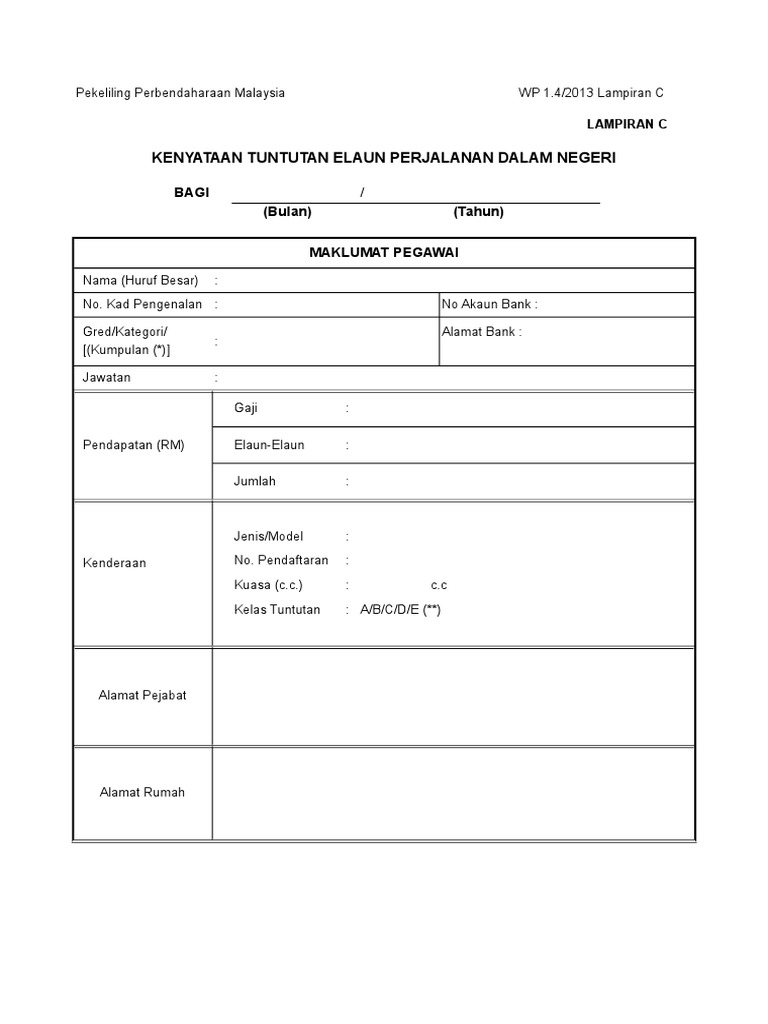 Doc Borang Tuntutan Elaun Perjalanan Dalam Negeri Samuel Louis Academia Edu