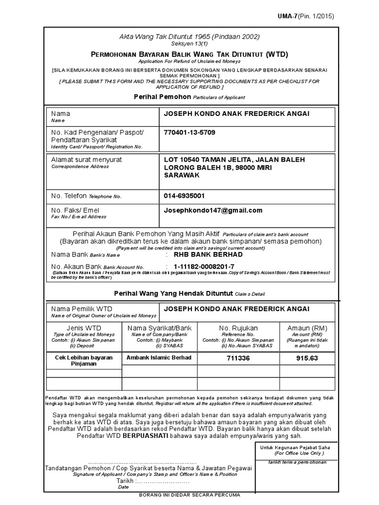 Contoh Cara Mengisi Borang Wang Tak Dituntut Uma 7 Info Inspirasi Resepi