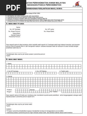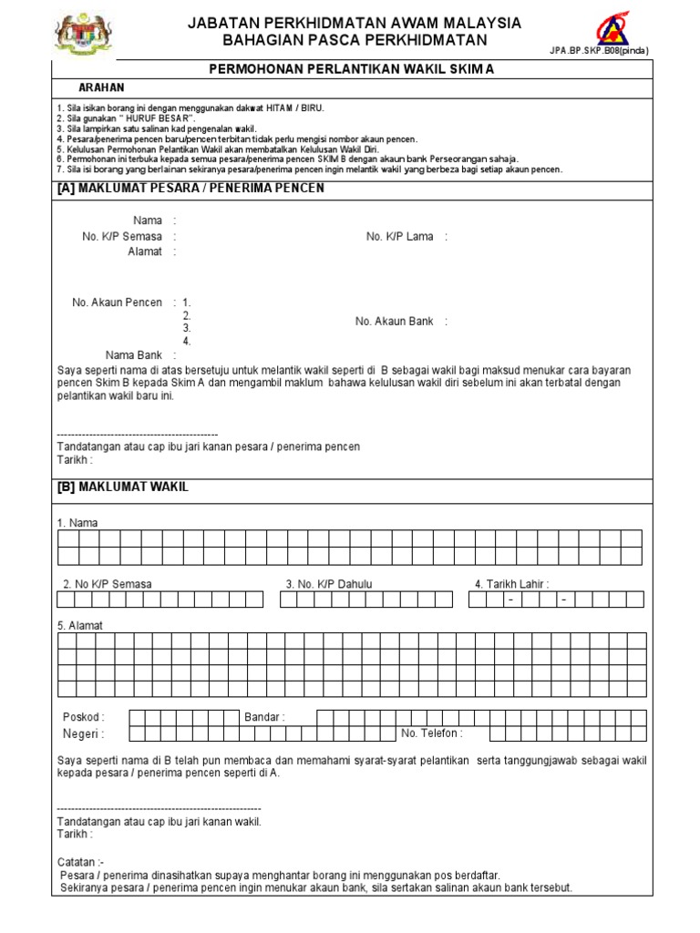 Pengurusan Maklumat Persaraan Sila Isi Borang Perlantikan Wakil Skim A Jpa Bp Skp B08 Yang Boleh Pdf Document
