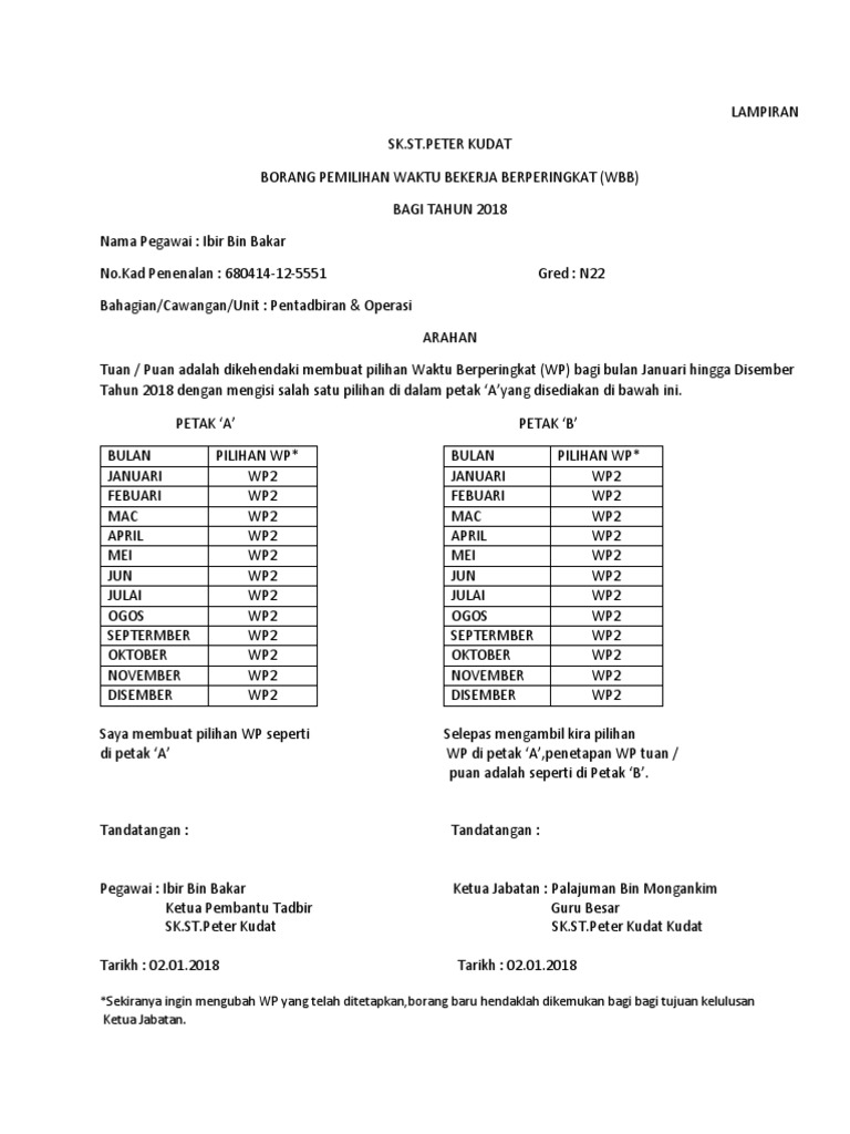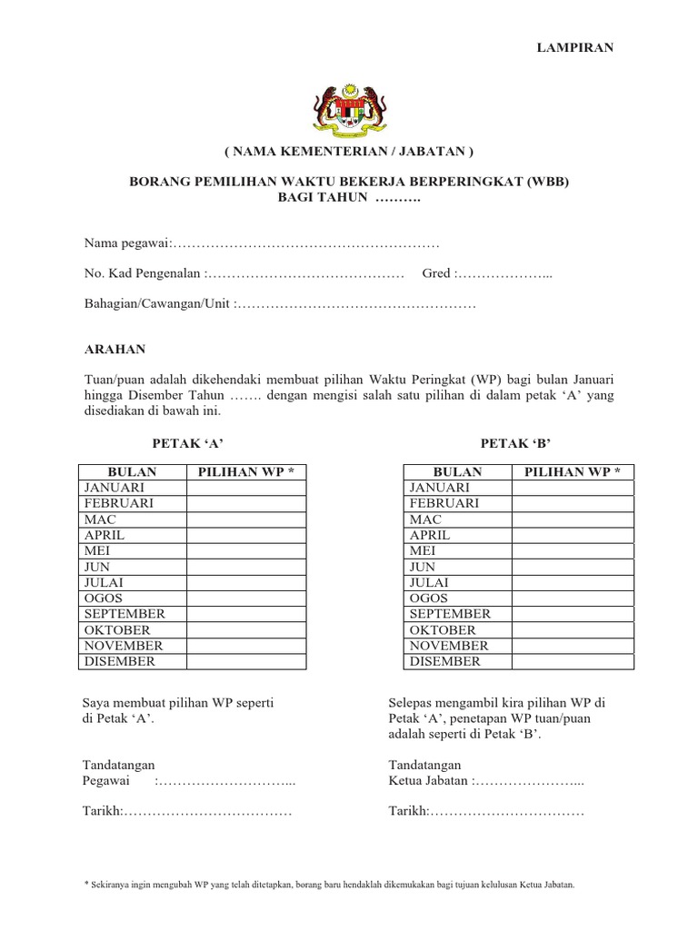 Borang Pemilihan Waktu Bekerja Berperingkat