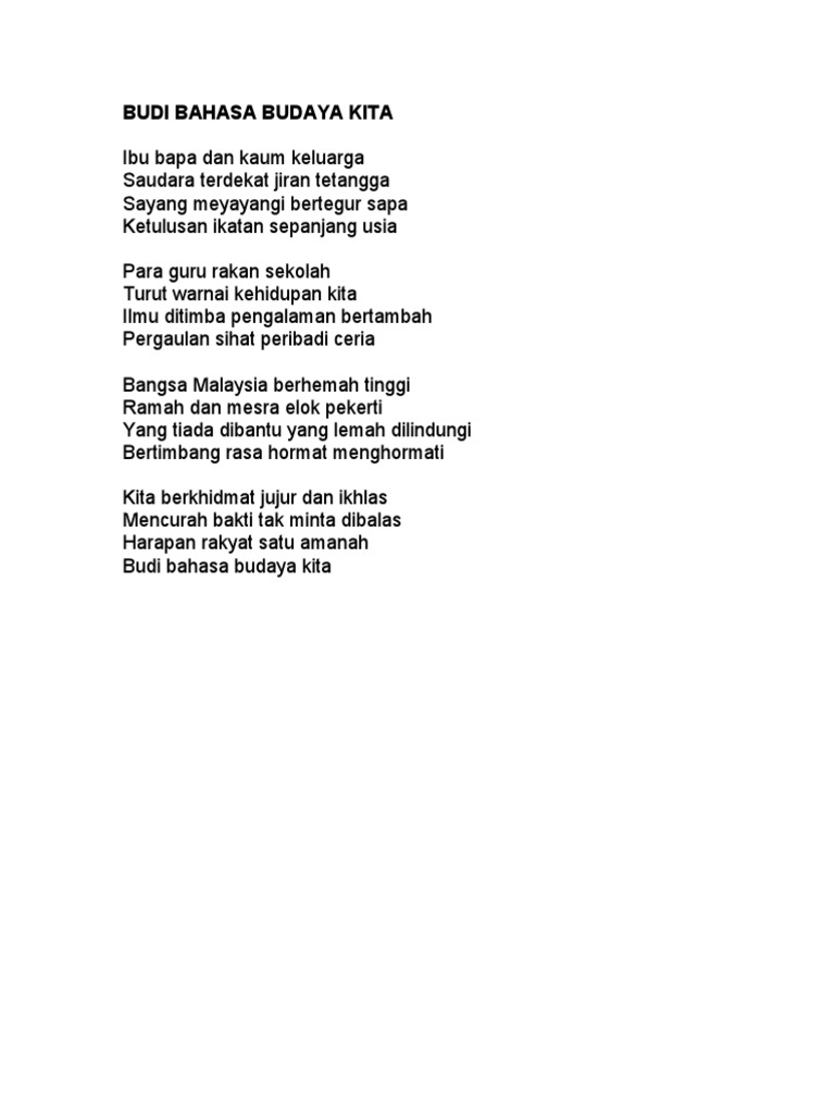 Lirik Lagu Budi Bahasa Budaya Kita Docx Document