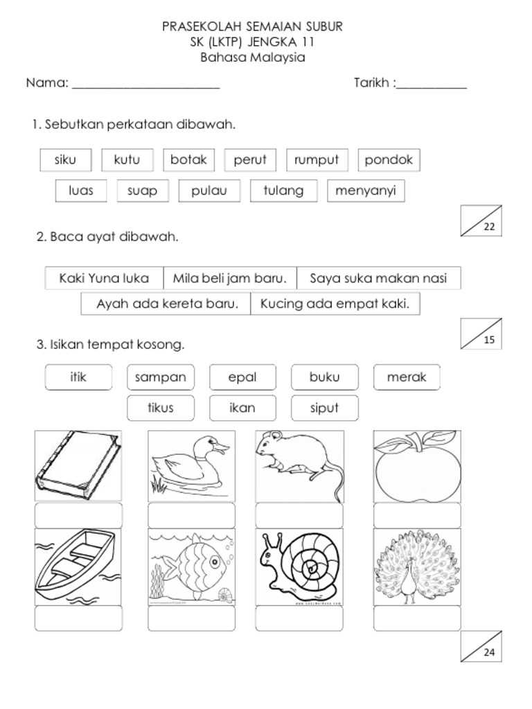Soalan Ujian Bahasa Melayu Prasekolah Membaca Buku Kartu Flash Buku Pelajaran