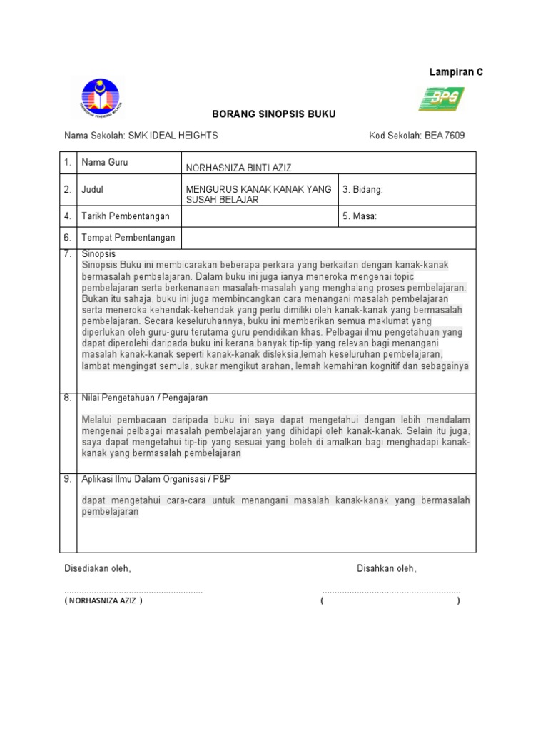 Sinopsis Sekolah Menguruskan Kanak Kanak Yang Sukar Belajar