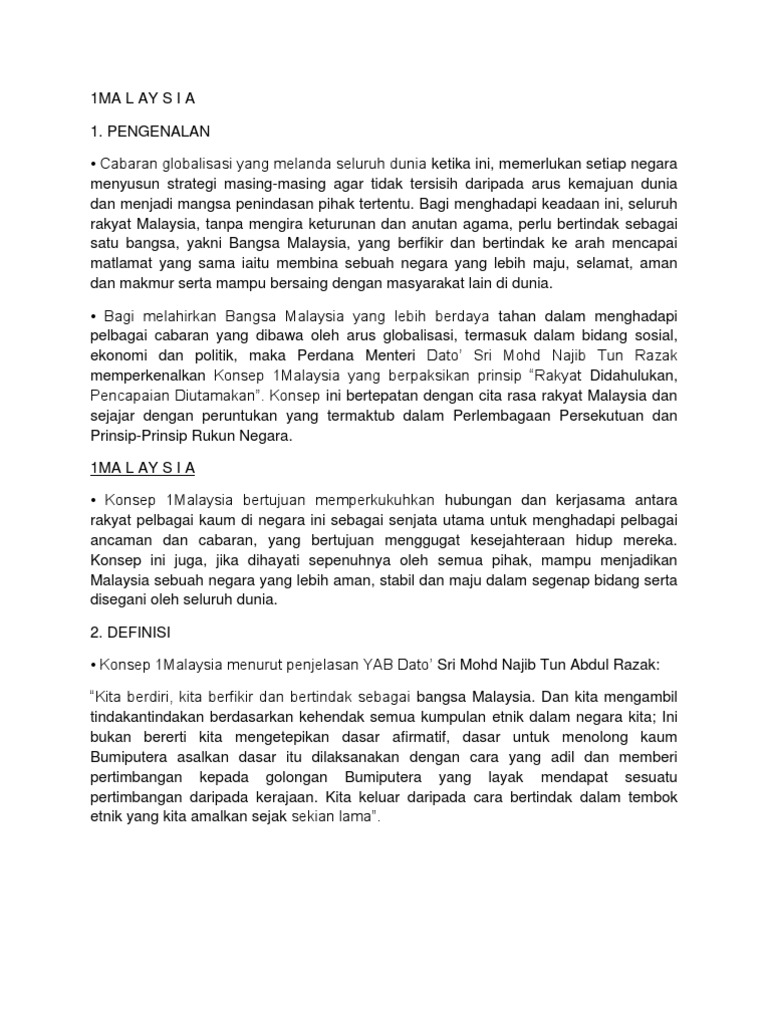 Doc Konsep 1 Malaysia Putih Kertas Academia Edu