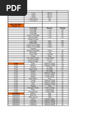 Calorie Chart For Indian Food Calorie Sheet Of Common Food Items Calorie Chart Of Indian Food Youtube