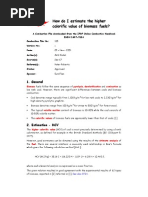 Calorific Value Of Biomass Fuels Pdf Fuels Combustion