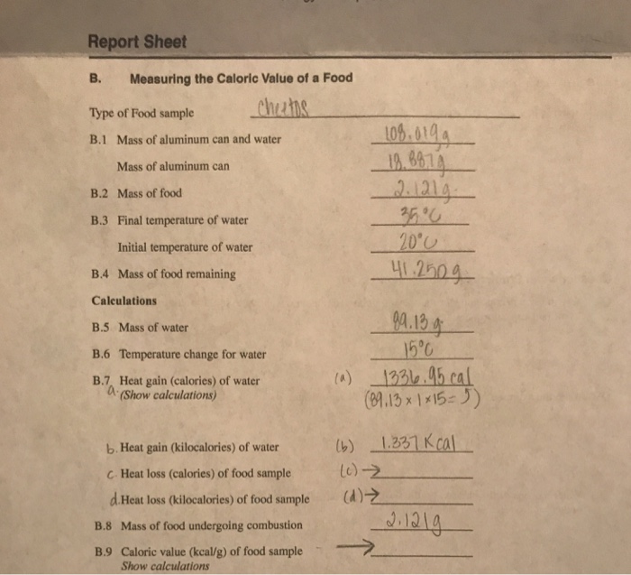 Solved Report Sheet B Measuring The Caloric Value Of A F Chegg Com