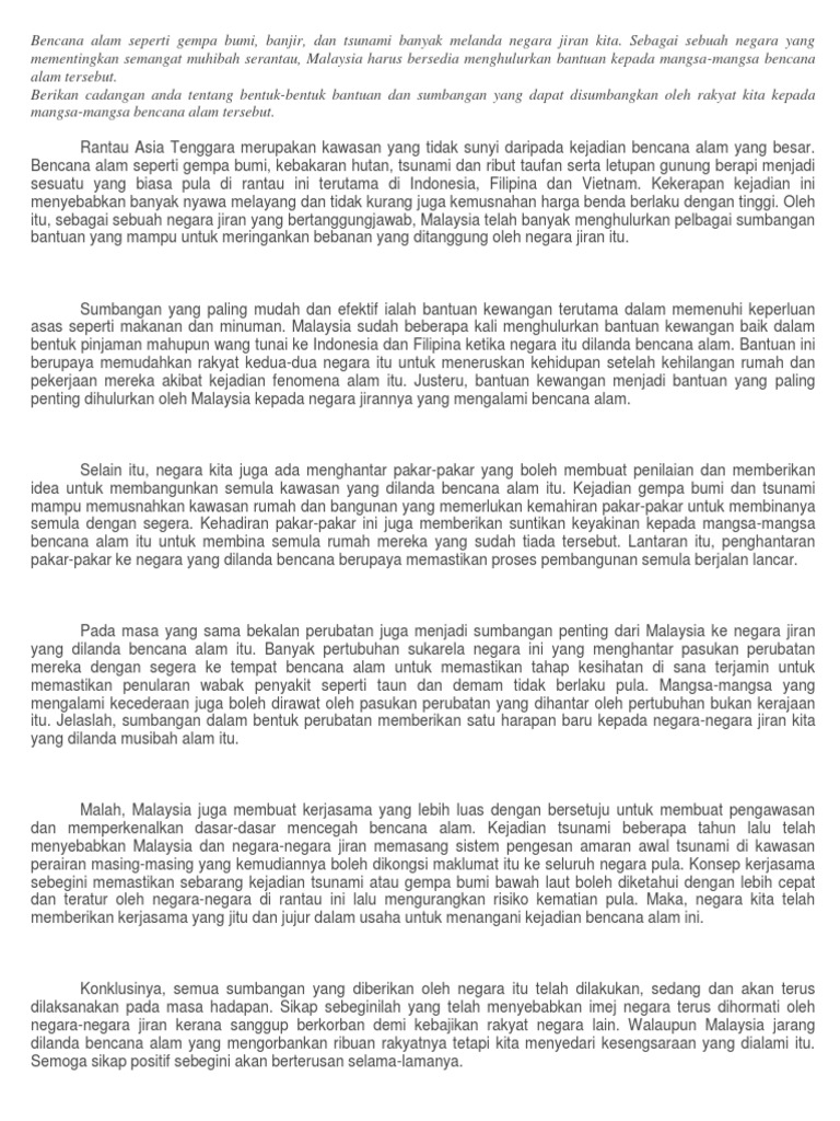 Contoh Karangan Bantuan Kepada Mangsa Bencana Alam Karangan Net