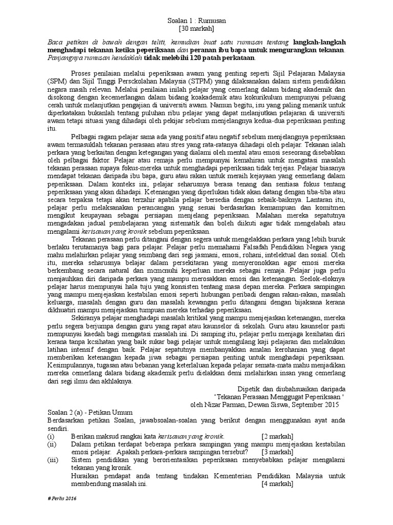 Karangan Cara Menangani Stress Dalam Kalangan Pelajar
