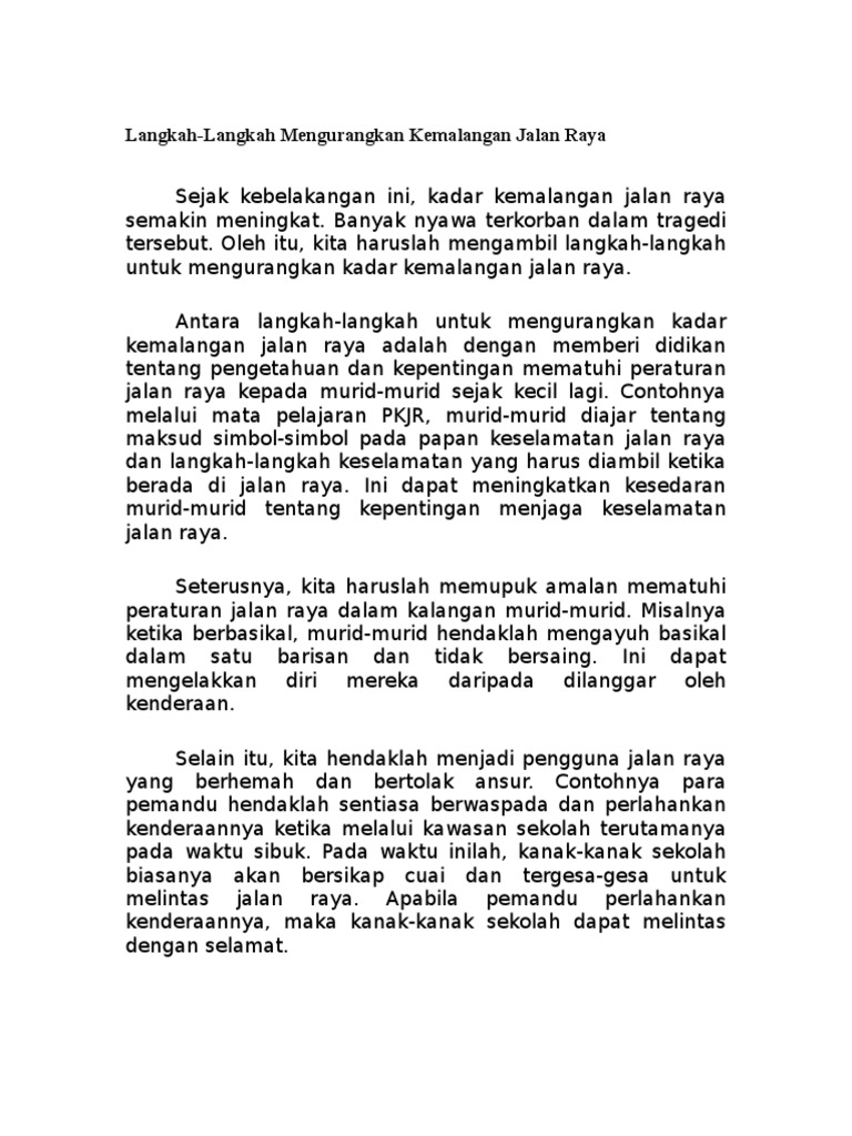 Karangan Docx Langkah Langkah Mengurangkan Kemalangan Jalan Raya Langkah Yang Boleh Dilakukan Untuk Mengurangkan Kemalangan Jalan Raya Adalah Dengan Course Hero