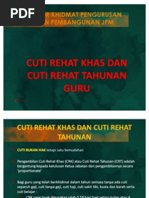 Kesihatan guru itu sendiri dengan perakuan lembaga. Pegawai dinaikkan pangkat ke gred dg32 pada 1 oktober 2006. Pengumpulan cuti rehat cara pengumpulan cuti rehat untuk tujuan pemberian gcr sama seperti pp 4 2003 dibaca bersama sama pp 7 2003.