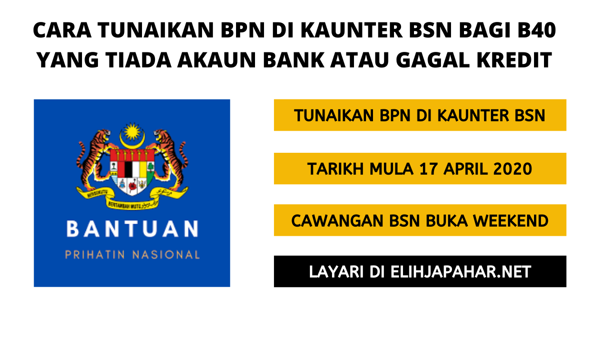 Cara Tunaikan Bpn Di Kaunter Bsn Bagi B40 Yang Tiada Akaun Bank Atau Gagal Kredit