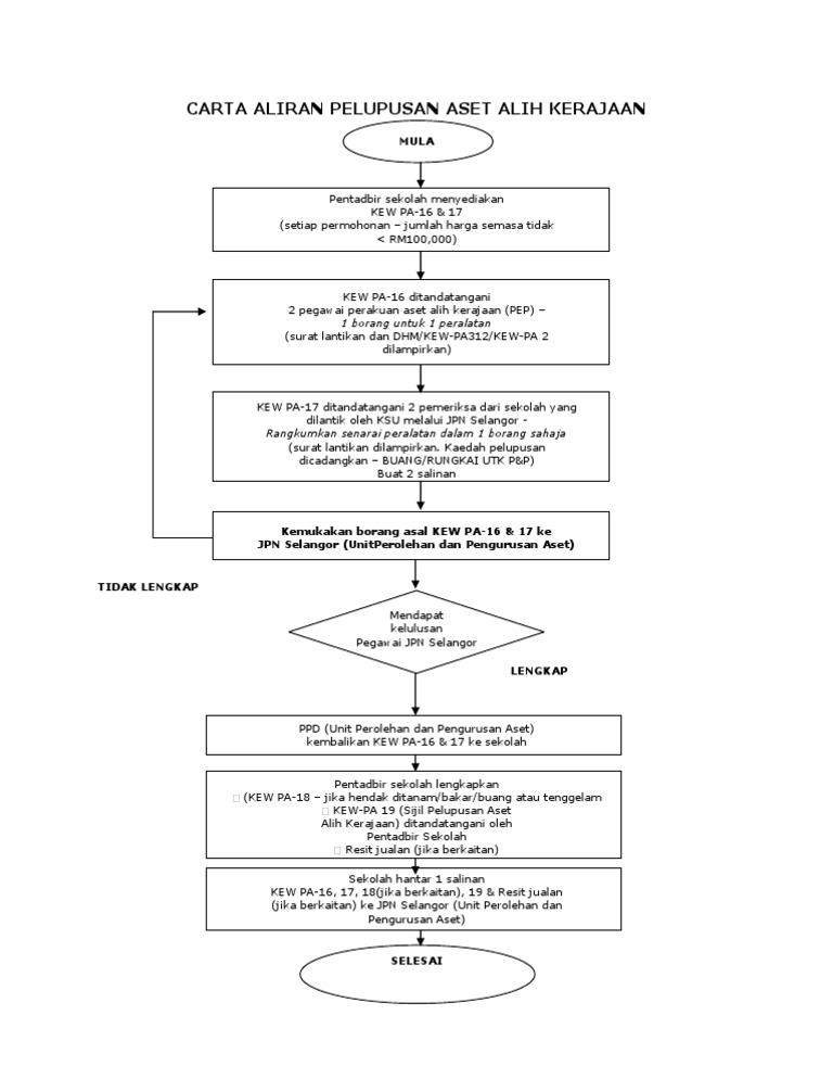 Carta Aliran Pelupusan Aset Alih Kerajaan Lengkap Tidak Lengkap